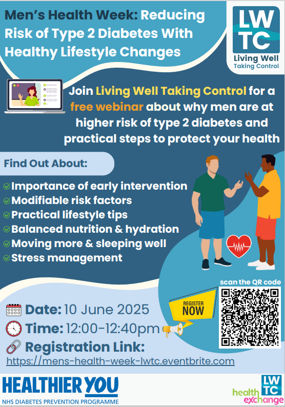 Men’s Health Week – reducing risk of Type 2 diabetes free webinar Posted by: amymarriott4 - Posted on: 5th June 20255th June 2025